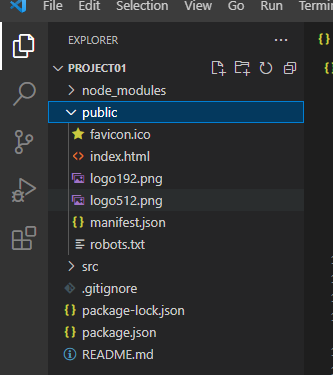그럼 위와 같이 PROJECT01 폴더 내부에 다른 폴더 및 파일들이 보인다.