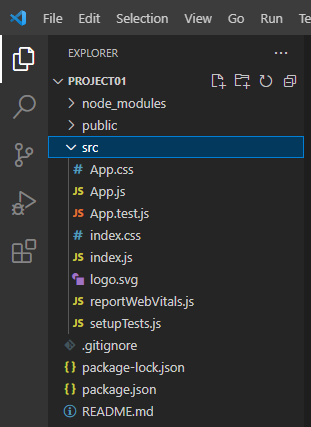 이전 글에서 생성한 react 프로젝트를 열어본다.
